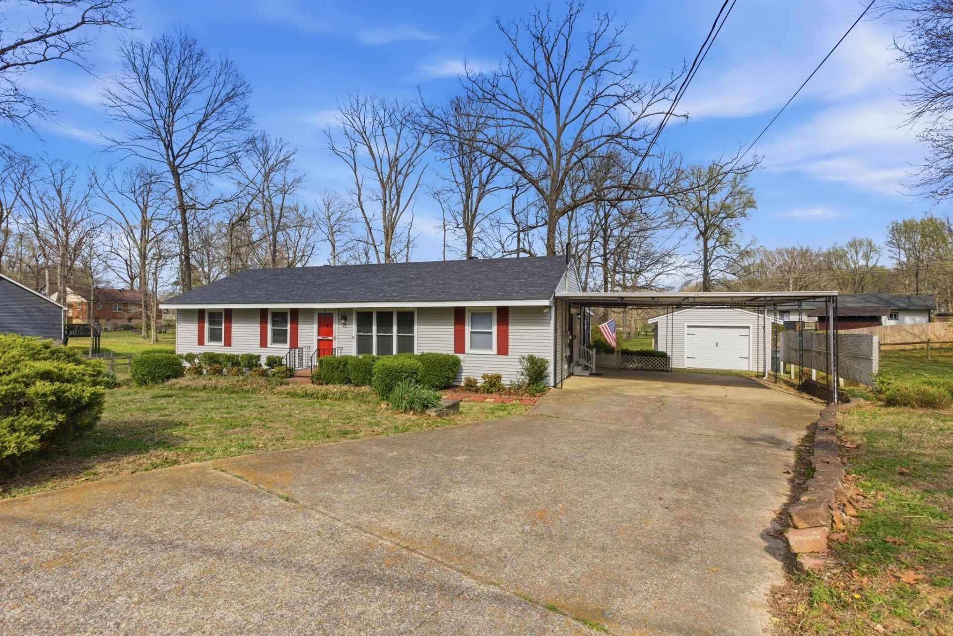 One Level Home in a well established neighborhood close to Luther Lake, Spacious Screened in porch great for coffee & rainy days. Two Car Carport & a 1 Car detached garage for storage or a man area. Concrete Driveway and mature Landscaping & Split Rail Fence. No Carpet. Ready to move in!