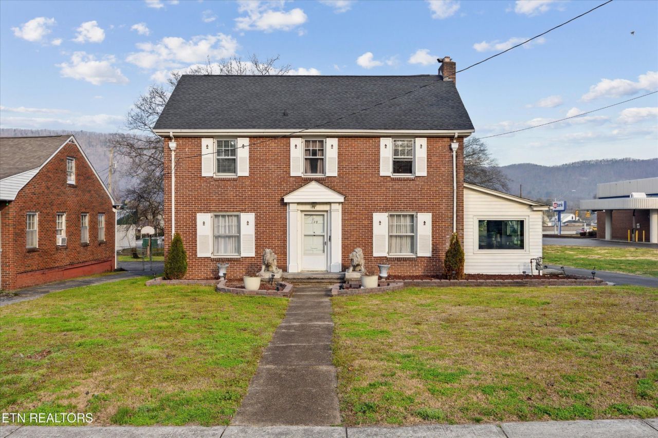1920's two-story brick Colonial Revival in a quaint little Tennessee town, nestled between the Cumberland Plateau and the Great Smoky Mountains, between Knoxville and Nashville. Large living room with gas fireplace and built-in bookcases. Formal dining room with its built-in hutches. All-season sunroom with its updated double-pane insulated windows. Kitchen and den with its solid wood paneling and ceiling fans. Media room with 85-inch TV screen, Dolby surround sound system with in-wall speakers, dimmable lights, black light, mini-split heat and air conditioner. Craft room with ceiling fan, dimmable lights, and wired for wall-mounted TV. Newly...read more