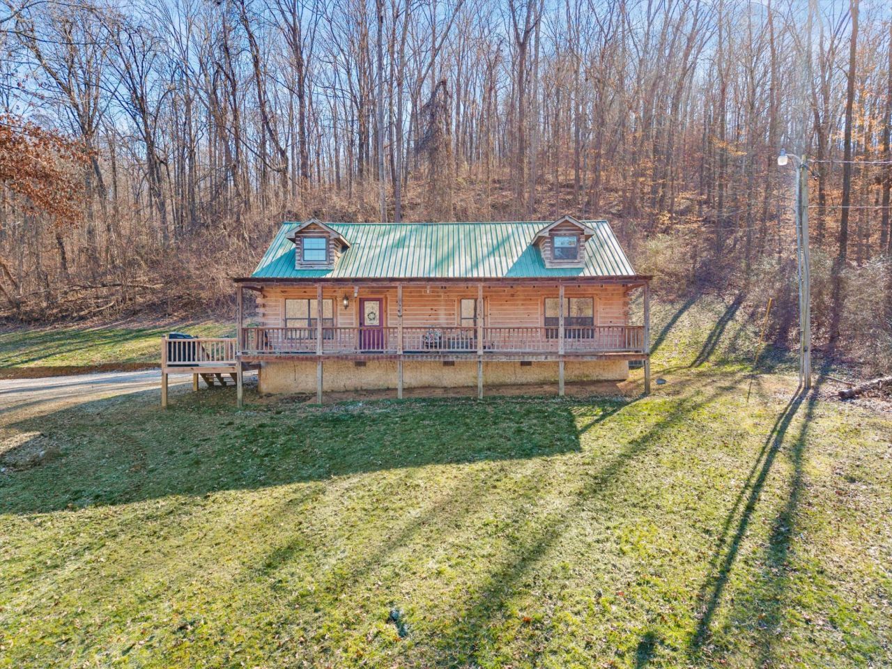 Welcome to 325 Evening Shadow Lane! Tucked away on a peaceful stretch of land, this property delivers the rustic charm of a mountain retreat with the comfort and style of a modern home. This striking two story log cabin welcomes you with breathtaking entry views straight into the vaulted, beam accented living room and open kitchen, creating an instant wow the moment you step inside.Warm hardwood floors flow throughout the main living areas, leading you to a cozy stone fireplace with gas logs, the perfect spot to unwind on cool Tennessee evenings. The open concept layout is ideal for entertaining and everyday living, highlighted by butcher...read more